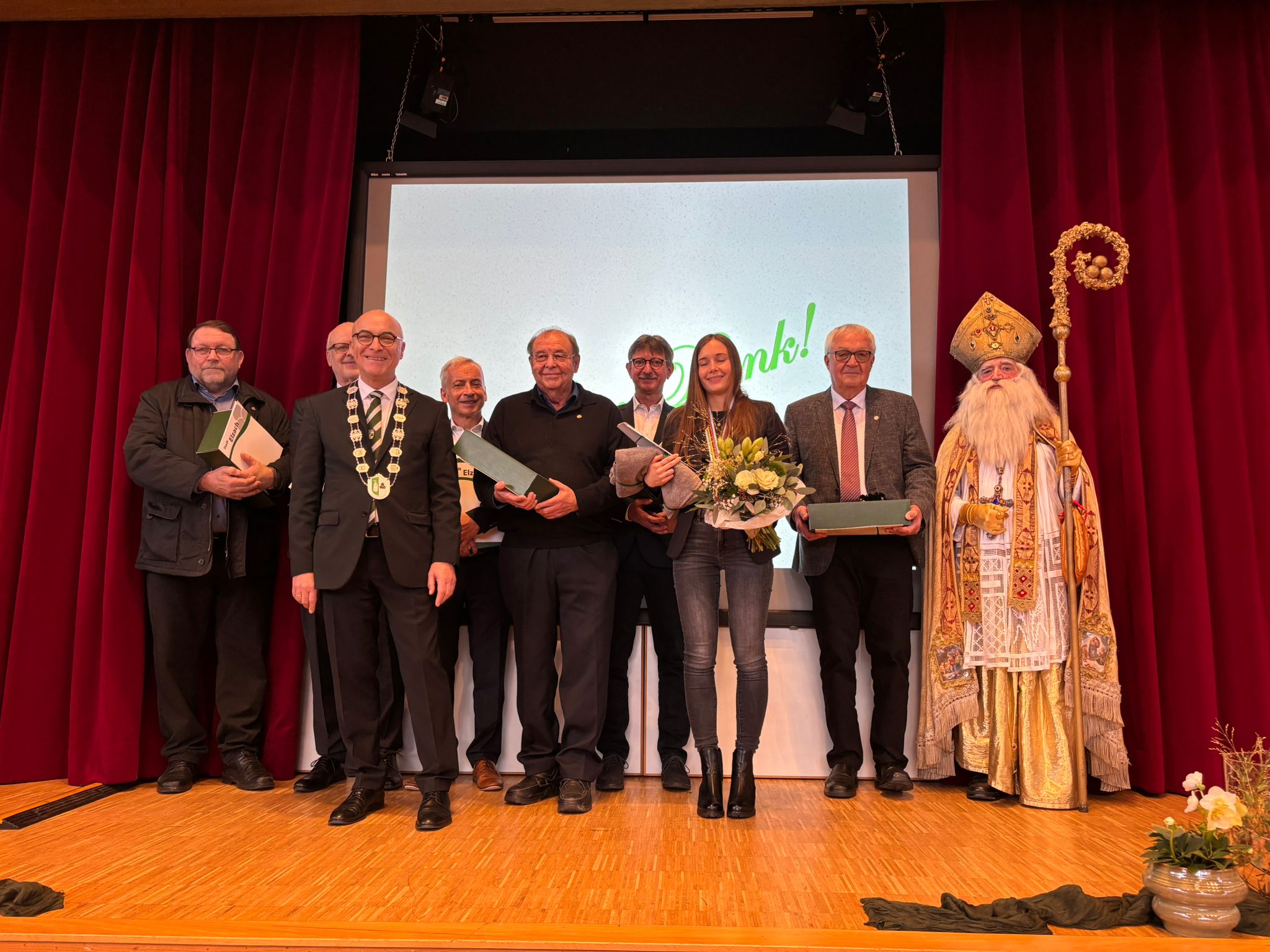 Im Anschluss überreichte er gemeinsam mit dem Ehrengast, dem hl. Nikolaus, der Weltmeisterin im Radball, Danielle Holzer, einen Preis aus der Josef-Burger-Stiftung und ehrte verdiente Bürger der Stadt.